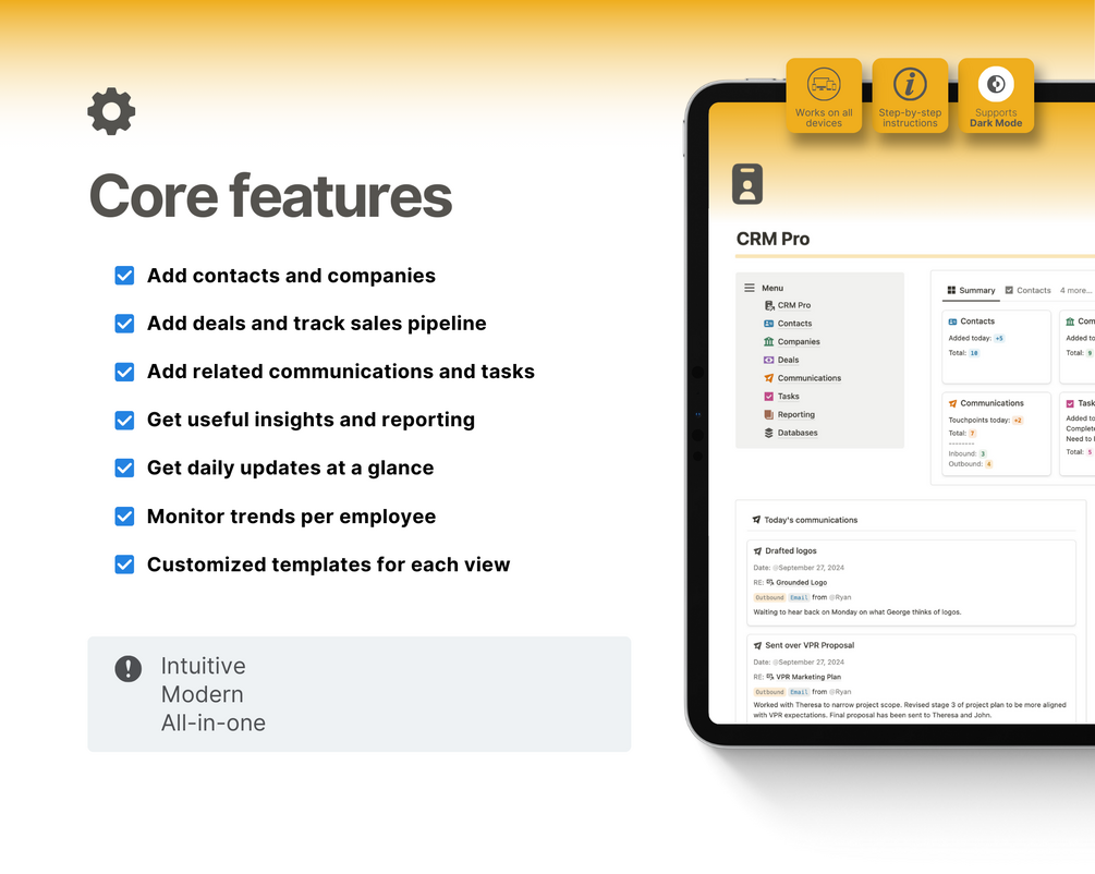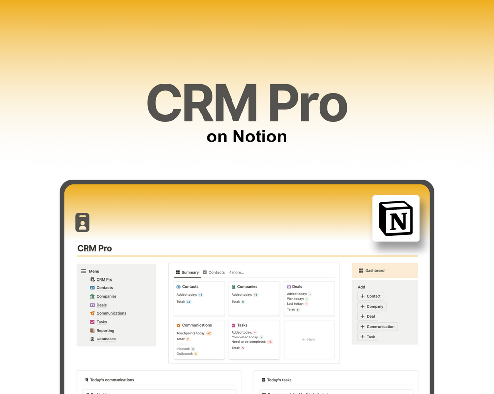 Ultimate CRM Pro Notion template designed for freelancers, side-hustlers, and small businesses.